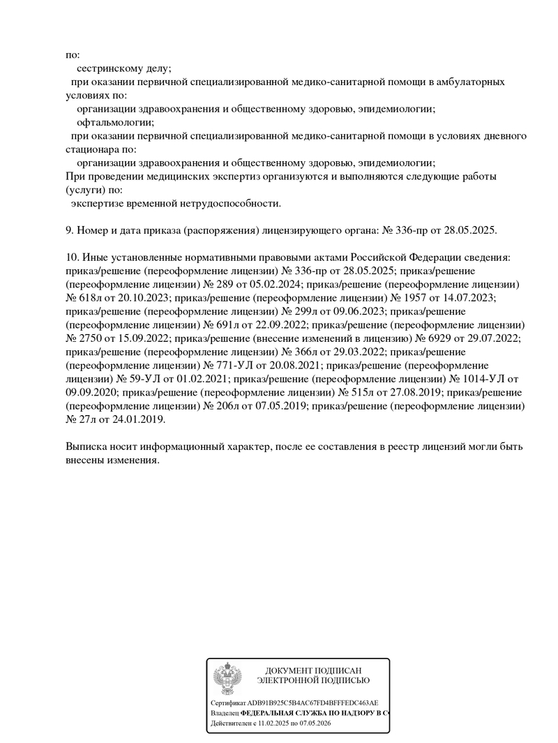 Проводит диагностику и лечение астигматизма, близорукости, дальнозоркости, конъюнктивит (вирусный, бактериальный, аллергический), косоглазия, ячменя. Занимается проверкой зрения, а также подбором очков и контактных линз.